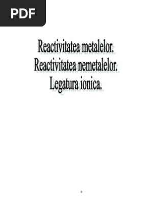 vizitati articolul complet aici : https://es.scribd.com/document/339138009/0proiect-Didactic-Metale Unități de măsură pentru viteza de reacție; Proprietati chimice metalele au caracter electropozitiv, deoarece atomii lor au tendinta sa cedeze electronii din straturile electronice exterioare si astfel trec in ioni cu sarcina pozitiva. Seria reactivitatii chimice a metalelor.